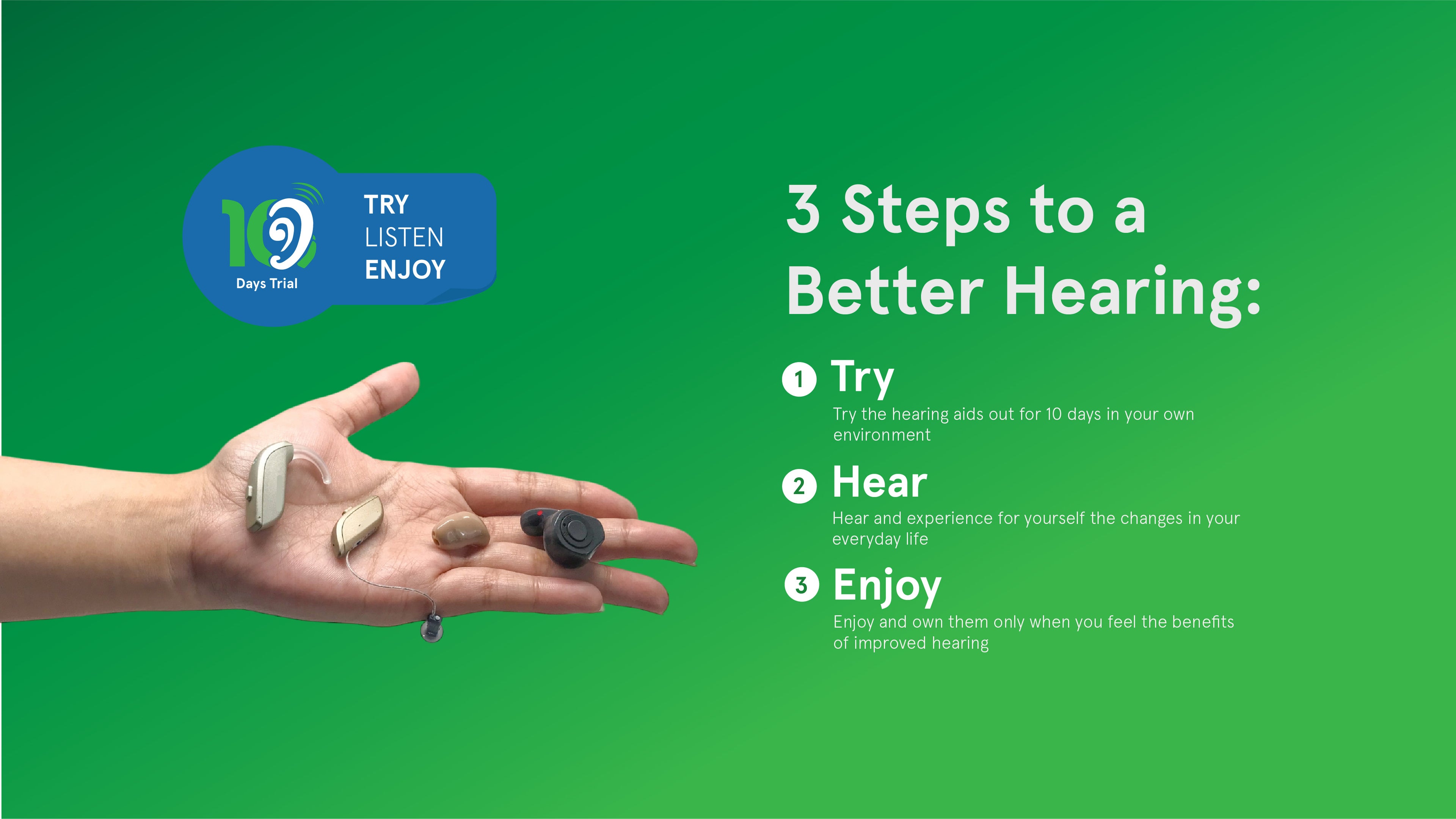 Experience the benefits of our hearing aids in the comfort of your home or office for 10 days, with no obligation to purchase. It's a risk-free way to improve your hearing.